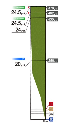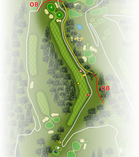 ティショットを右に打ち過ぎると第2打で右の木がスタイミーになってくるため、いかに左サイドをキープできるかがコース攻略のカギとなります。グリーン周りはガードバンカーでしっかりとガードされているため、ティショットと第2打でフェアウェイをキープし、第3打で確実にグリーンをとらえたいホールです。